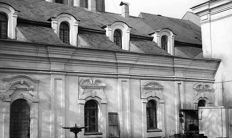 1977 р. Фрагмент південного фасадуРозмір зображення: 800:479 піксел 1977 р. 29 березня. Фото М.І.Жарких. Негатека, № A246-06. |