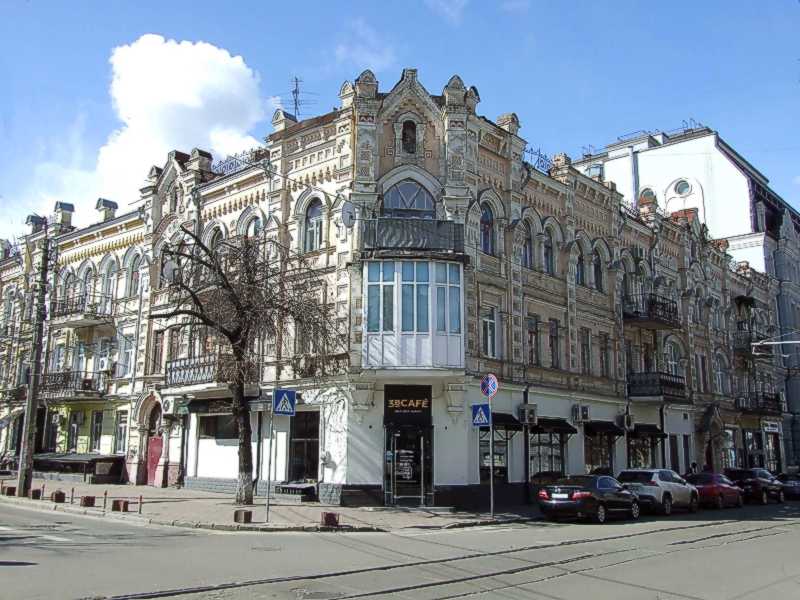Ліворуч – вул. Хорева, праворуч – вул. Межигірська.