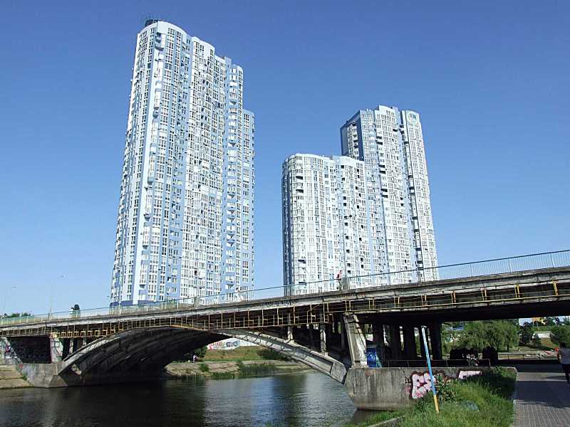 На тлі висотних житлових будинків по просп. Соборності 30а (ліворуч) і 30 (праворуч). Фото М. І. Жарких, 7 червня 2020 р.