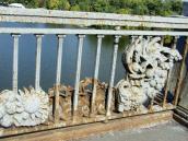 Основа ліхтарного стовпаРозмір зображення: 600:800 піксел Фото М. І. Жарких, 27 вересня 2021 р. Такими стандартними стовпами опоряджено весь міст. |