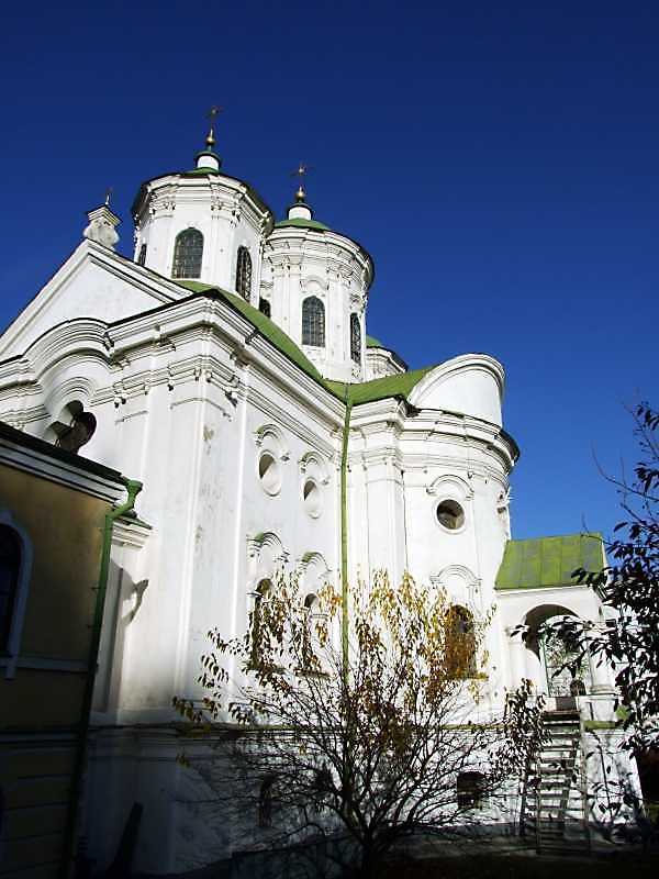 2008 р. Загальний вигляд із заходу Розмір зображення: 600:800 піксел 9 листопада 2008 р. Фото М.І.Жарких. Вкладені елементи Верх бабинця Верх нави Західний фронтон Південна конха Південний ґанок