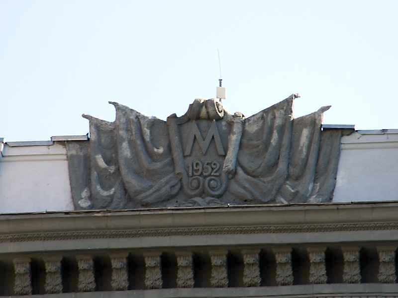 Фронтон з датою 1952 р. Розмір зображення: 800:600 піксел 2008 р. 9 червня. Фото М.І.Жарких. Вище | Наступна сторінка