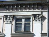 2021 р. Центральна частина фасаду по вул. АндріївськійРозмір зображення: 800:600 піксел Фото М. І. Жарких, 21 березня 2021 р. |