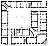 Виділений профільованими гуртами перший поверх, оздоблений дощаним рустуванням у межах розкріповок, відіграє роль своєрідного стилобата для верхнього ордерного ярусу – другого й третього поверхів, об’єднаних вертикалями пілястрів і напівколон великого композитного ордера. У зрізаному наріжжі й бічних розкріповках пластична напруга зростає завдяки заміні гладеньких пілястрів на канелюровані тричвертєві фусти чотириколонних портиків, капітелі яких пишно розквітають букетами стилізованого акантового листя зі спіралями волют.