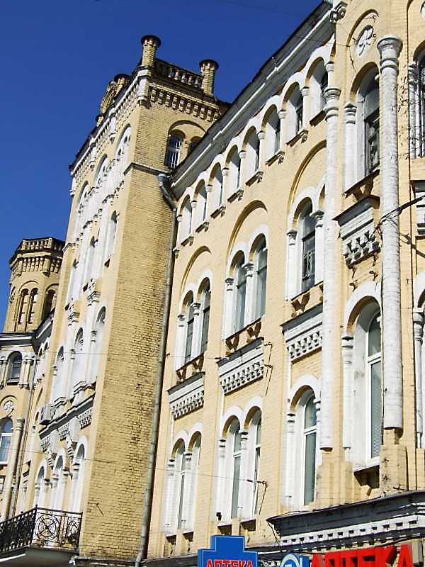 2009 р. Фрагмент фасаду по бульвару Шевченка в ракурсіРозмір зображення: 600:800 піксел 8 квітня 2009 р. Фото М.І.Жарких. |