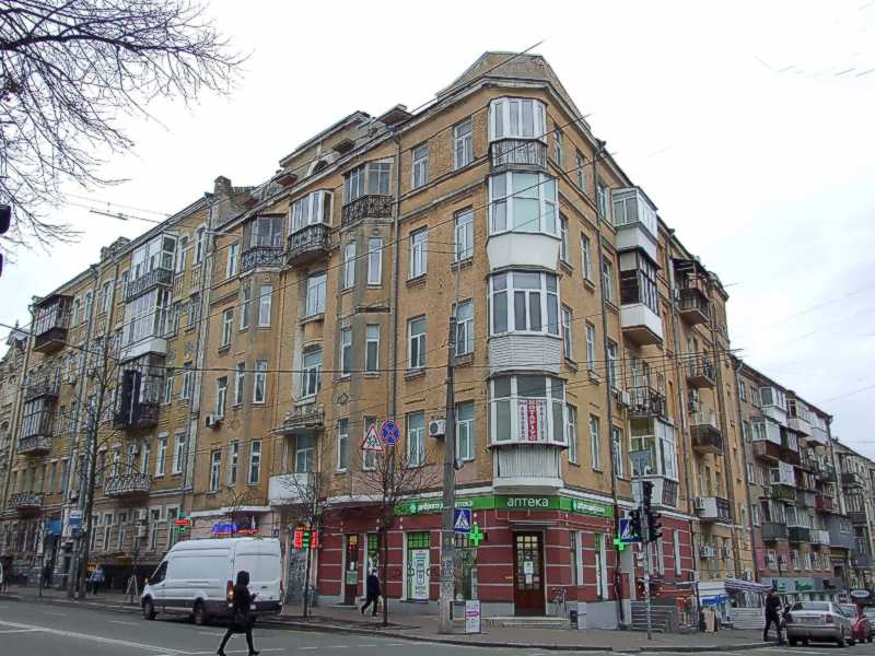 Житловий будинок (№ 35)Розмір зображення: 800:600 піксел Вигляд з північного заходу. Ліворуч – вул. Січових стрільців, праворуч – вул. Некрасовська. Фото М. І. Жарких, 17 березня 2021 р. |