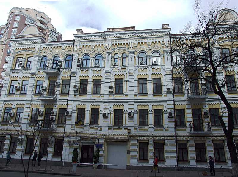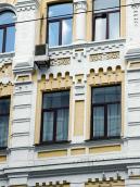 2020 р. Головний фасад Розмір зображення: 800:596 піксел Фото М. І. Жарких, 15 березня 2020 р. Вкладені елементи Вікна 4-го поверху і бічний фронтон Вікна 3-4-го поверхів Фрагмент 3-4-го поверхів