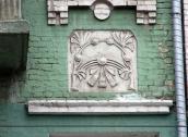 Сецесійне вікно 3-го поверху Розмір зображення: 600:800 піксел Фото М. І. Жарких, 17 березня 2021 р. Вкладені елементи Сецесійний рельєф