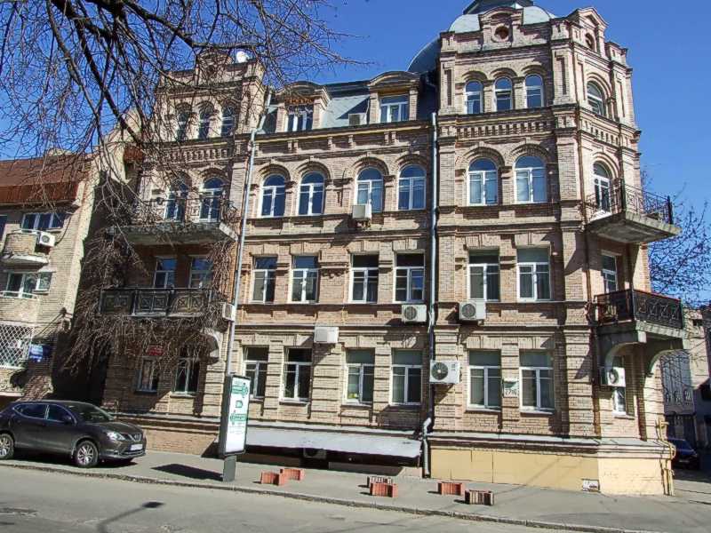 2021 р. Фасад по вул. Почайнинській Розмір зображення: 800:600 піксел Фото М. І. Жарких, 26 березня 2021 р. Вкладені елементи Наріжна частина з боку вул. Почайнинської