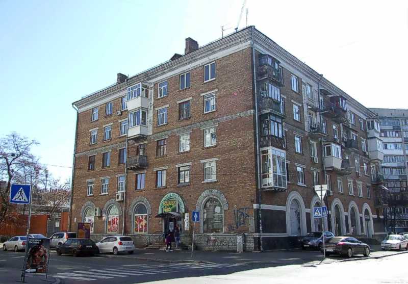 Житловий будинок (№ 32)Розмір зображення: 800:557 піксел Вигляд з північного заходу. Ліворуч – вул. Турівська, праворуч – вул. Почайнинська. Фото М. І. Жарких, 26 березня 2021 р. |