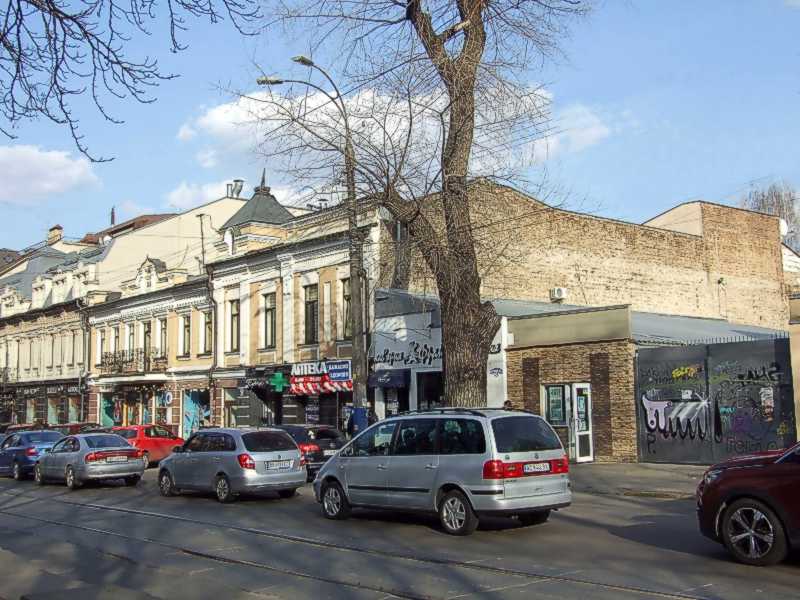 Ліворуч – будинок № 22 (двоповерховий), праворуч – 20 (одноповерховий). Фото М. І. Жарких, 1 квітня 2021 р.
