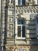 2021 р. Головний фасад Розмір зображення: 800:600 піксел Фото М. І. Жарких, 1 квітня 2021 р. Вкладені елементи Вікна 3-го поверху (+) Вікно 2-го поверху Центральна частина головного фасаду (+)