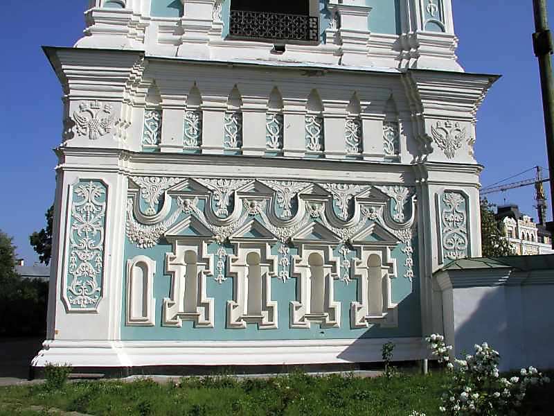 2005 р. Південно-східний фасад 1-го ярусу Розмір зображення: 800:600 піксел 31 травня 2005 р. Фото М.І.Жарких. Вкладені елементи Скульптурний декор (1-й від лівого боку елемент) Скульптурний декор (1.5-й від лівого боку елемент) Скульптурний декор (2-й від лівого боку елемент) Скульптурний декор (3-й від лівого боку елемент) Скульптурний декор (4-й від лівого боку елемент)