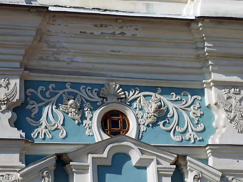 Скульптурний декор люкарни Розмір зображення: 800:600 піксел 17 серпня 2007 р. Фото М.І.Жарких. Попередня сторінка | Вище | Наступна сторінка
