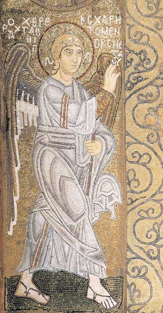 Фрагмент мозаїчної сцени «Благовіщення». Джерело: Звід пам’яток історії і культури України. – К.: 2011 р., т. 3 (Київ), № 503-27.