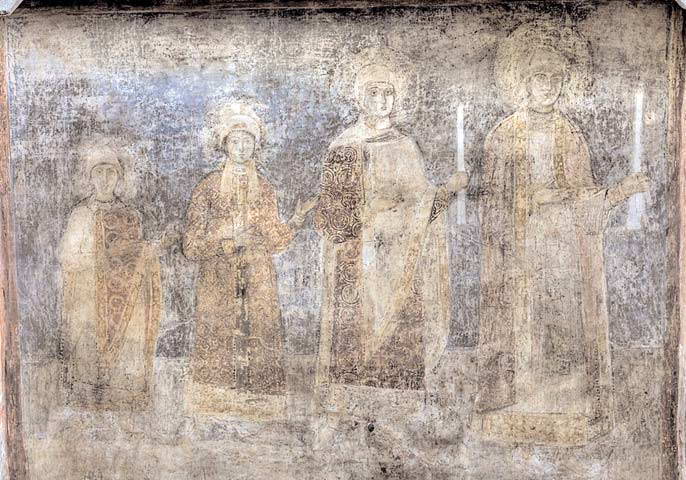 Портрет княжої родиниРозмір зображення: 686:480 піксел Південна частина фрески центральної нави. Джерело: Звід пам’яток історії і культури України. – К.: 2011 р., т. 3 (Київ), № 503-53. |