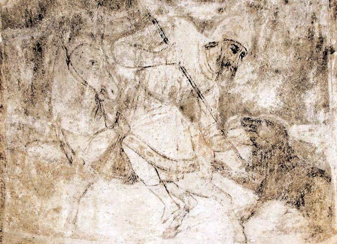 Забиття ведмедяРозмір зображення: 687:498 піксел Фреска північної сходової вежі. Джерело: Звід пам’яток історії і культури України. – К.: 2011 р., т. 3 (Київ), № 503-60. |