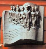 ліворуч від входу – в пам’ять винищувального батальйону 1941 (1973, замінена 1984, бронза, арх. В. Шевченко);