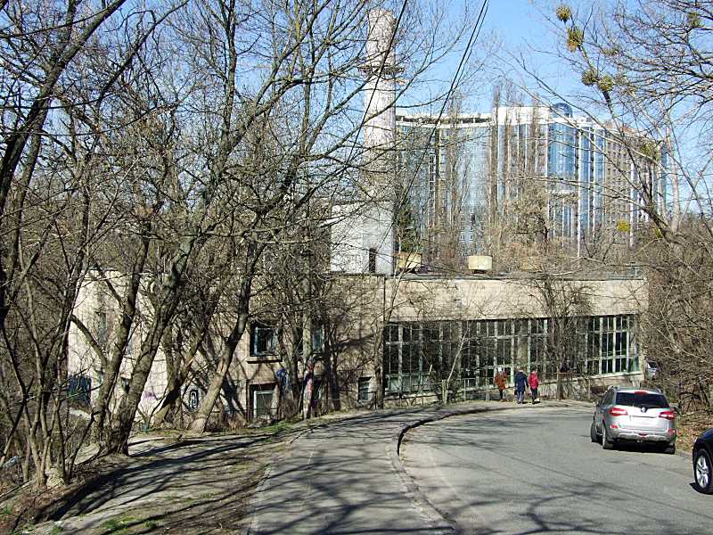 Виробничий корпус (№ 23в)Розмір зображення: 800:600 піксел Вигля з півдня на тлі велетенського житлового комплексу «Поділ плаза» (вул. вулиця Глибочицька, 73-77). Фото М. І. Жарких, 16 березня 2020 р. |