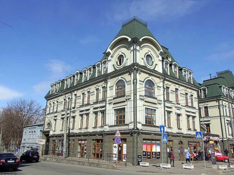 Ліворуч – вул. Межигірська, праворуч – вул. Хорева. На плані Києва будинок має адресу Хорива 25 / Межигірська 12, не навпаки! |