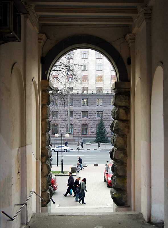 2009 р. Бічна арка проходу на Хрещатик Розмір зображення: 590:800 піксел 6 квітня 2009 р. Фото М.І.Жарких. Попередня сторінка | Вище | Наступна сторінка