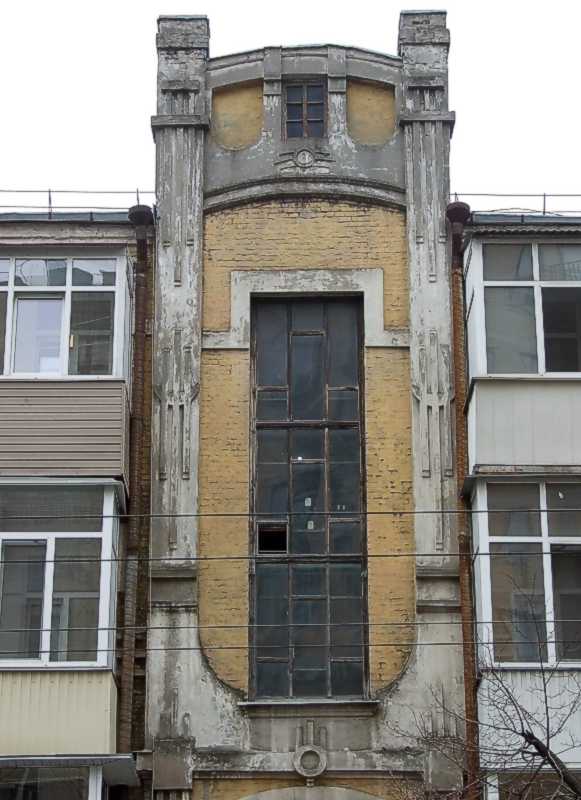 Сецесійні вікна 3-4-го поверху сходової кліткиРозмір зображення: 581:800 піксел Фото М. І. Жарких, 31 березня 2021 р. |