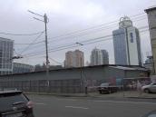Будівельний майданчик, розчищений на місці знесеного павільйону. Вигляд з північного сходу. Фото М. І. Жарких, 31 березня 2021 р.