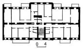 Чотириповерховий з підвалами, цегляний, пофарбований (перший поверх тинькований), у плані прямокутний, з невеликим центральним ризалітом з боку подвір’я. Підвали перекриті склепіннями, верхні поверхи – з пласкими перекриттями. Дах двосхилий, з бляшаним покриттям. Двосекційний, секції розділяє наскрізний проїзд на внутрішнє подвір’я. Кожна секція має парадні та чорні сходи.