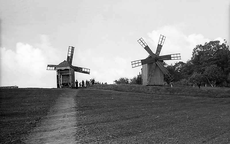 1976 р. Загальний вигляд вітряків 2 та 1Розмір зображення: 800:500 піксел 1976 р. 10 жовтня. Фото М.І.Жарких. Негатека, № A204-12. |