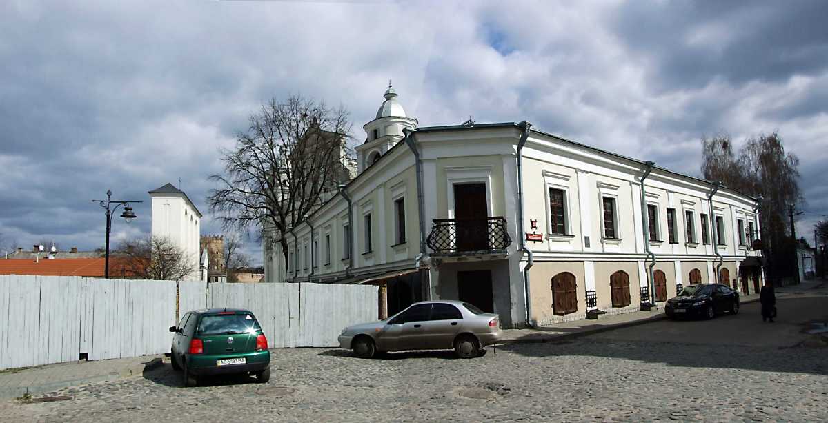 2012 р. Панорама з північного заходуРозмір зображення: 1200:613 піксел Ліворуч – вул.Кафедральна, перекрита парканом нового будівництва; праворуч – вул. Драгоманова. 9 квітня 2012 р. Фото М.І.Жарких. |