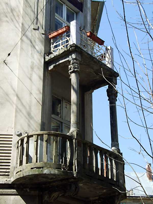 Сецесійний балкон 2-го поверху Розмір зображення: 600:800 піксел 19 квітня 2013 р. Фото М.І.Жарких. Попередня сторінка | Вище | Наступна сторінка