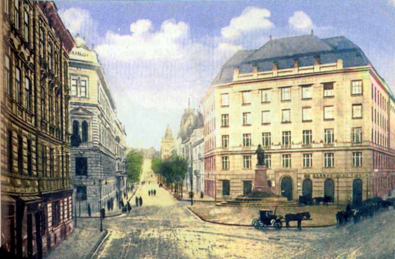1914 р. Площа Григоренка і вул.Листопадового чину. Поштівка Розмір зображення: 800:525 піксел Попередня сторінка | Вище | Наступна сторінка