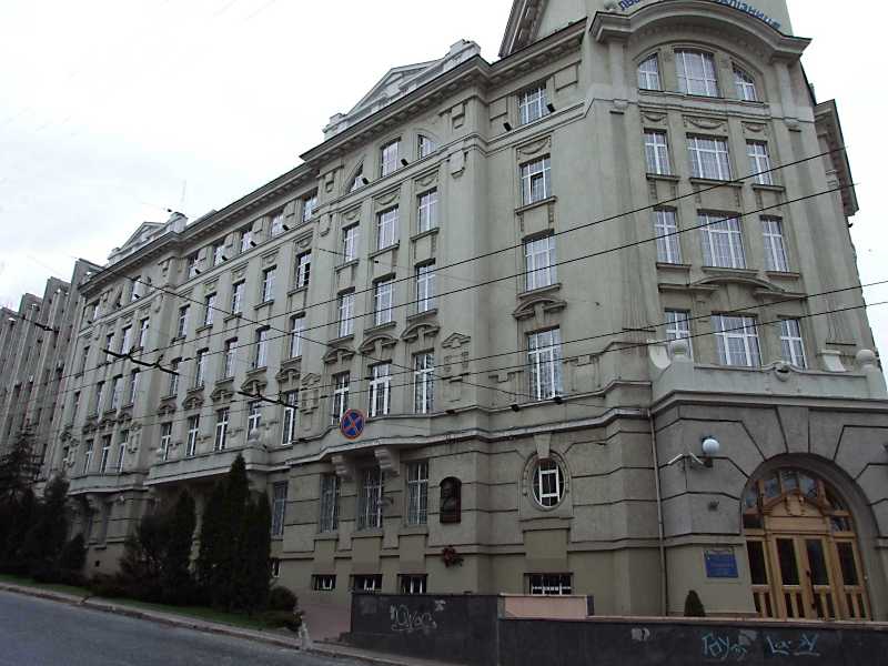 2012 р. Фасад по вул. Листопадового чину Розмір зображення: 800:600 піксел 8 квітня 2012 р. Фото М.І.Жарких. Вкладені елементи Меморіальна дошка Г. Кирпі