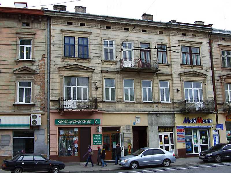 У житловому будинку № 51 за Польщі був магазин готового жіночого одягу Люфта, за радянських часів – магазин “Продукти”, від радянських часів тут працює магазин “Тканини”, а від часів незалежності – крамниця будматеріалів “БудСам” і магазин галантереї “Левеня”.