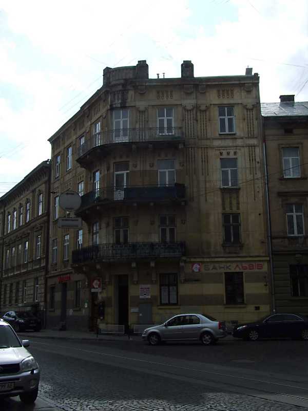 2012 р. Вигляд у перспективі вул. І. ФранкаРозмір зображення: 600:800 піксел 4 квітня 2012 р. Фото М.І.Жарких. Ліворуч – вул. І. Франка, праворуч – вул. Саксаганського. |