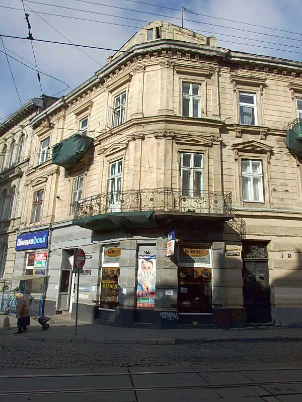 Наріжна частина фасаду Розмір зображення: 600:800 піксел Фото М.І.Жарких, 4 жовтня 2019 р. Вище | Наступна сторінка