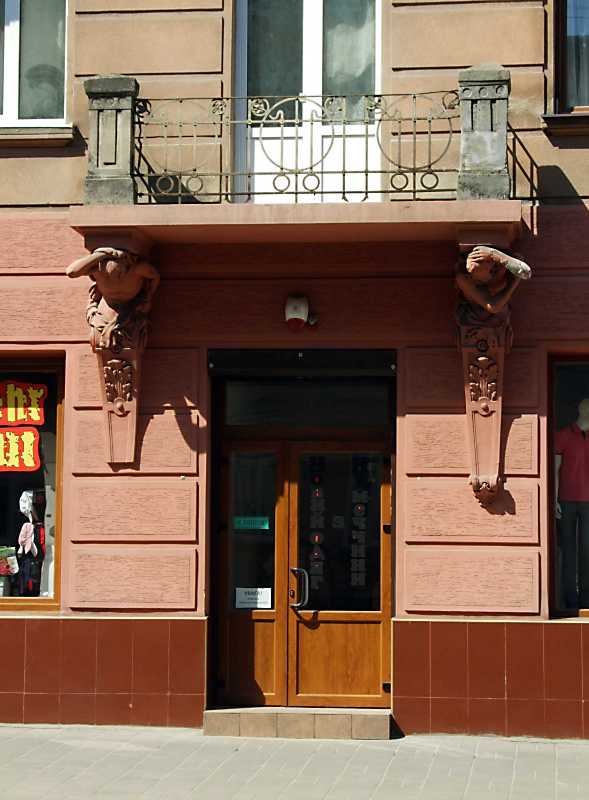 Вхід Розмір зображення: 589:800 піксел 19 квітня 2013 р. Фото М.І.Жарких. Вкладені елементи Ліва скульптура консоль балкону Права скульптура консоль балкону