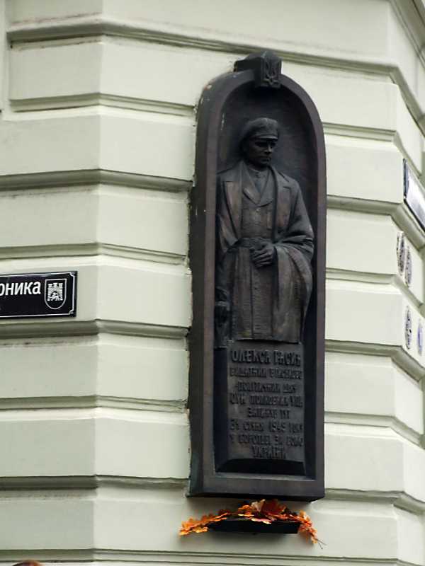 На дошці напис: «Олекса Гасин, видатний військово-політичний діяч ОУН, полковник УПА, загинув тут 31 січня 1949 року у боротьбі за волю України».