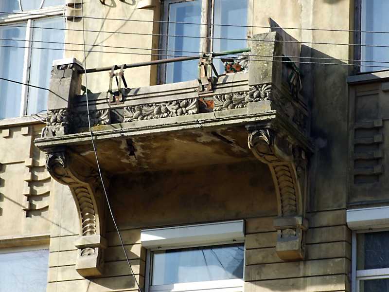 Сецесійний балкон 3-го поверху Розмір зображення: 800:600 піксел 16 квітня 2013 р. Фото М.І.Жарких. Попередня сторінка | Вище | Наступна сторінка