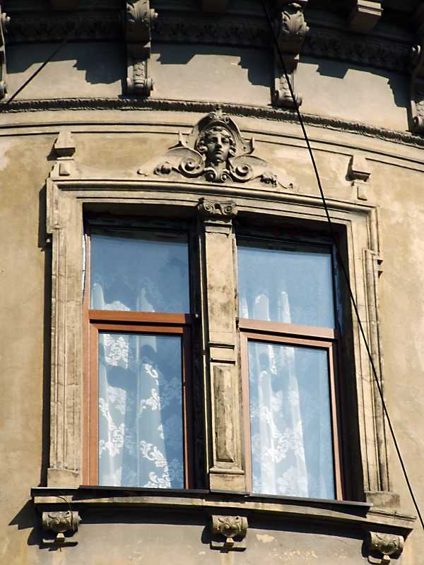 2013 р. Вікно 3-го поверху в наріжному еркеріРозмір зображення: 600:800 піксел 16 квітня 2013 р. Фото М.І.Жарких. |