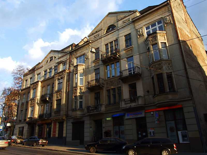 2012 р. Будинки № 36 та 34Розмір зображення: 800:600 піксел Вигляд з північного заходу. 4 квітня 2012 р. Фото М.І.Жарких. |