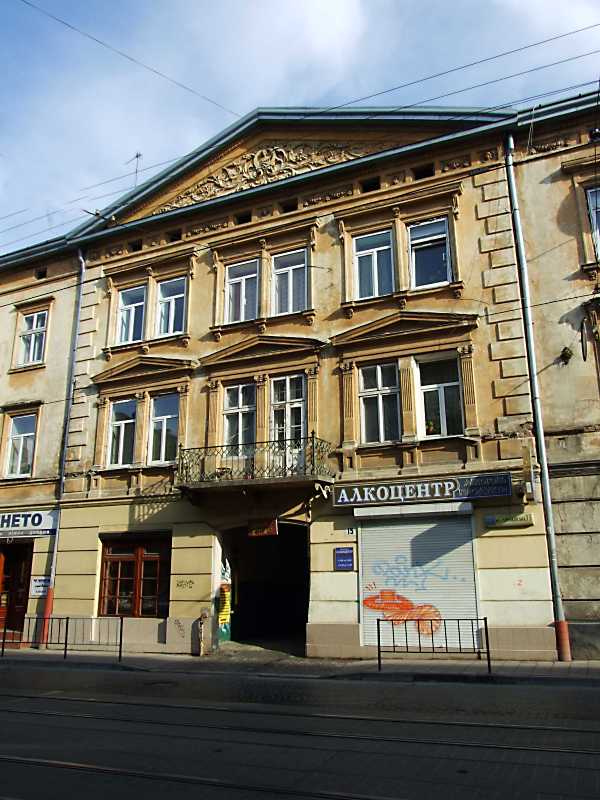 2012 р. Центральна частина головного фасаду Розмір зображення: 600:800 піксел 4 квітня 2012 р. Фото М.І.Жарких. Вкладені елементи Фронтон Балкон 2-го поверху