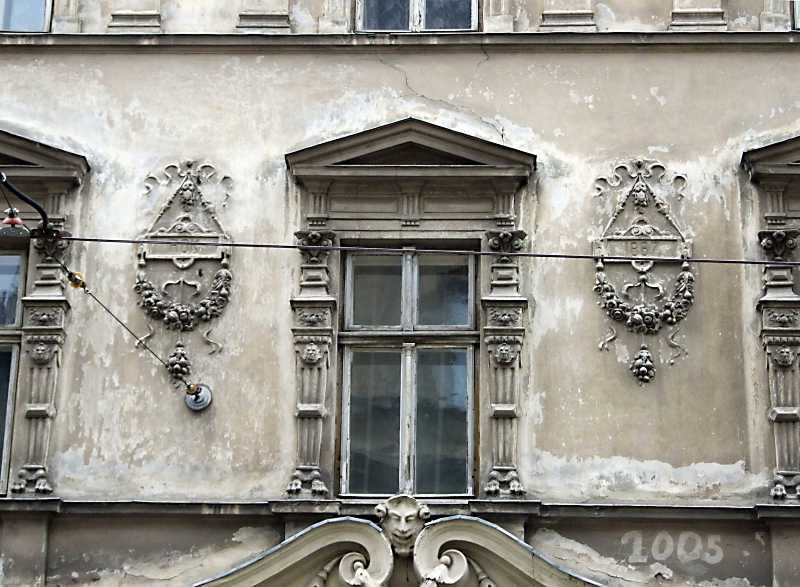 Вікно 2-го поверху Розмір зображення: 800:587 піксел 8 квітня 2012 р. Фото М.І.Жарких. Вкладені елементи Рельєфний картуш з датою 1887