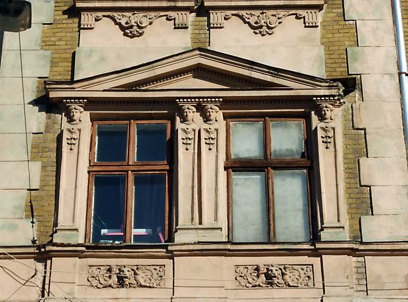 Вікна 3-го поверху Розмір зображення: 800:593 піксел 18 квітня 2013 р. Фото М.І.Жарких. Вкладені елементи Пілястри з капітелями-маскаронами