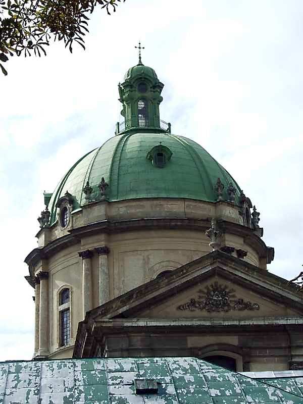 2007 р. Купол. Вигляд зі сходу Розмір зображення: 600:800 піксел 13 вересня 2007 р. Фото М.І.Жарких. Вкладені елементи [2] Ліхтарик Люкарна купола Тимпан східного фронтону