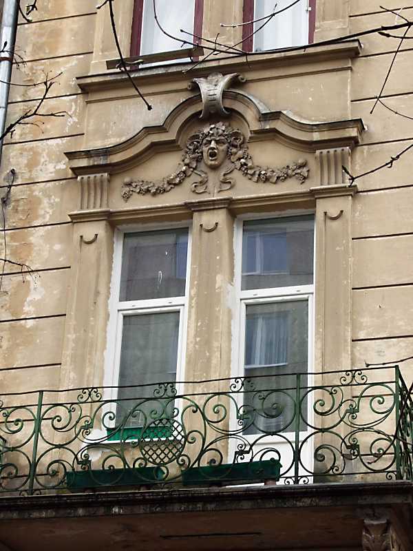 2012 р. Балкон 2-го поверху Розмір зображення: 600:800 піксел 7 квітня 2012 р. Фото М.І.Жарких. Вкладені елементи Маскарон
