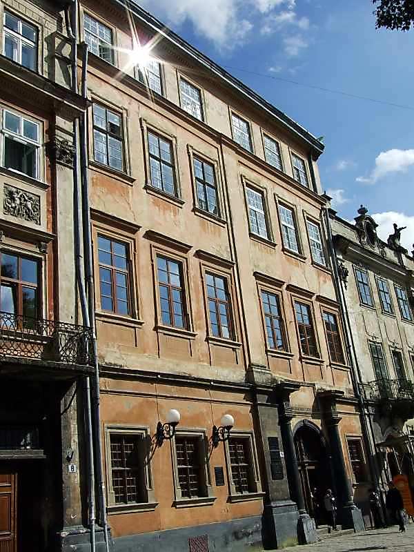 Палац збудовано в 1634 р. архіт.Я.Покоровичем для львівських католицьких архієпископів. Він мав 68 кімнат, золотий та фарфоровий зали. Під час реставрації 1985 – 1987 рр. відкрито настінні розписи 17 ст.