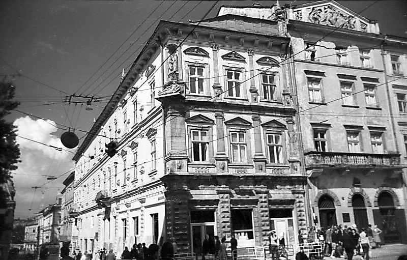 1977 р. Південно-західний ріг (будинки № 23, 24)Розмір зображення: 800:511 піксел 1977 р. 16 липня. Фото М.І.Жарких. Негатека, № A316-06. |