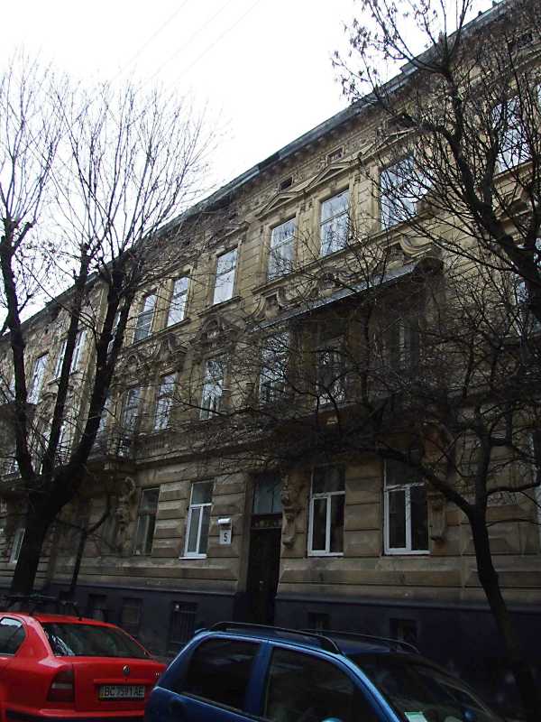 Житловий будинок (№ 5) Розмір зображення: 600:800 піксел 7 квітня 2012 р. Фото М.І.Жарких. Вкладені елементи 2012 р. Вікно 2-го поверху 2012 р. Консоль балкона у вигляді каріатіди (1) 2012 р. Консоль балкона у вигляді каріатіди (2) 2013 р. Загальний вигляд (+)