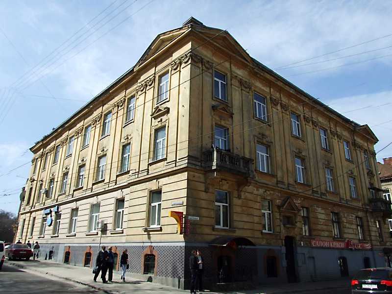 Будинок (№ 1)Розмір зображення: 800:600 піксел Ліворуч – вулиця Шота Руставелі, праворуч – вулиця Скельна. 16 квітня 2013 р. Фото М.І.Жарких. |